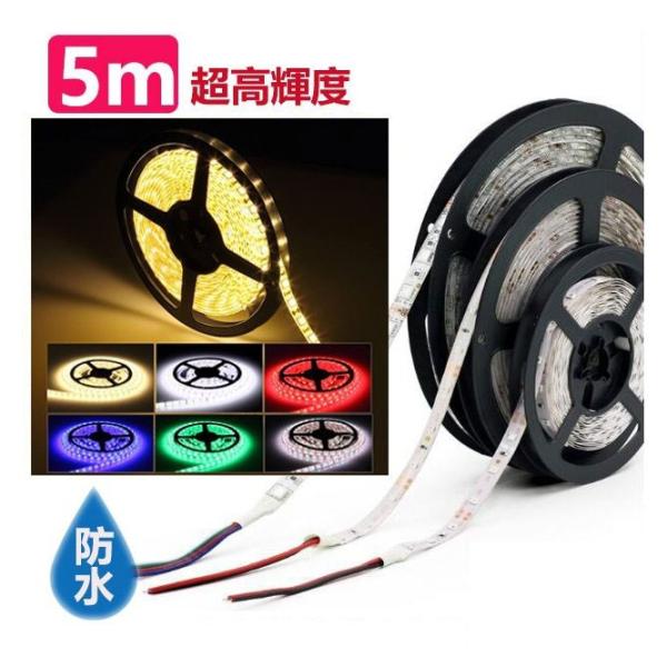 LEDテープ LEDテープライト5m 防水 DC12V 5M 300連 超高輝度SMD5050 正面発光 切断可能 電球色 両面テープ 家庭 間接照明 車 イルミネーションライト DIY