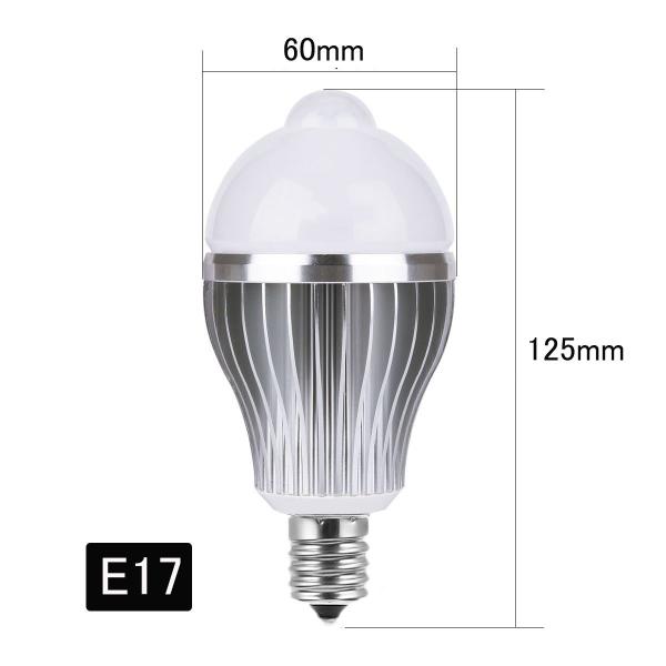LED電球 人感センサー付 E17口金 7W 50W相当 自動点灯消灯 節電対策 電球色 昼光色