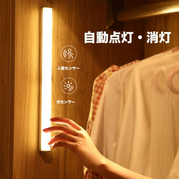 USB充電式LEDライト 電池不要 LEDライト人感センサー付き 無段階調光 懐中電灯 50cm バーライトマグネット内蔵多機能操作ボダン付き 光センサー付きLEDライト