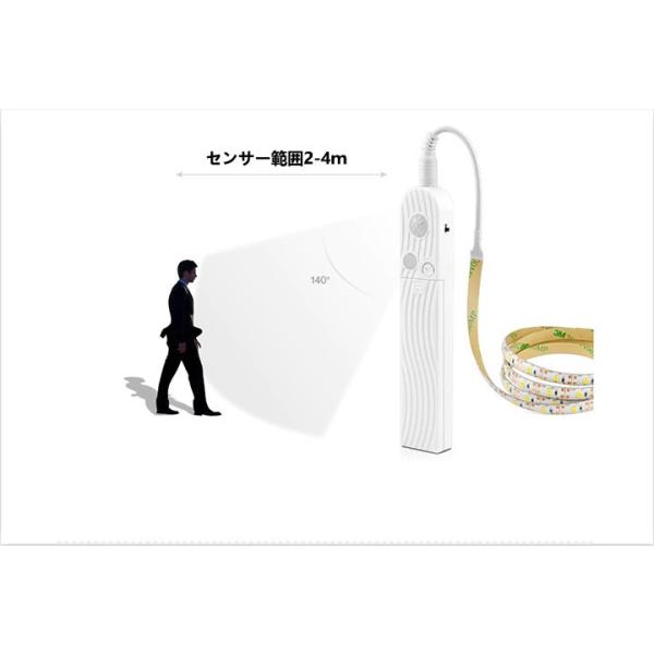 LED テープライト 人感センサー付き 1.5m 電池式 SMD3258 5V LEDテープ 階段 間接照明 棚下照明 フロアライト 足元灯