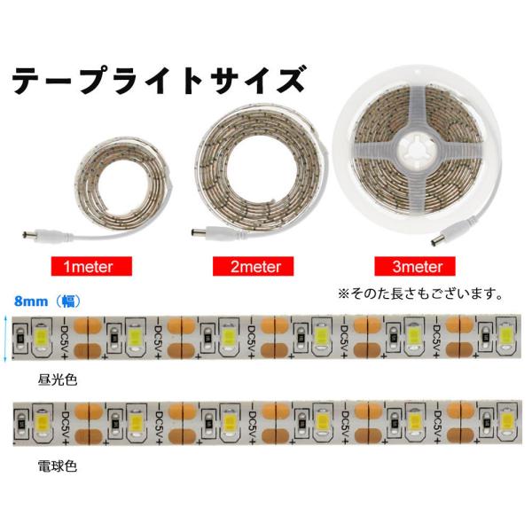 LED テープライト 人感センサー付き 1m USB式 SMD3258 5V LEDテープ 階段 間接照明 棚下照明 フロアライト 足元灯 調光対応