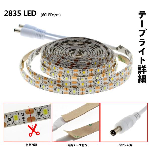 LED テープライト 人感センサー付き 2m USB式 SMD3258 5V LEDテープ 階段 間接照明 棚下照明 フロアライト 足元灯 調光対応