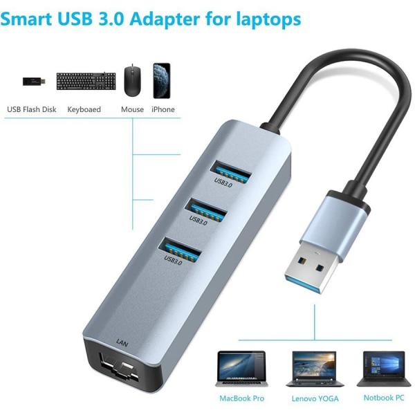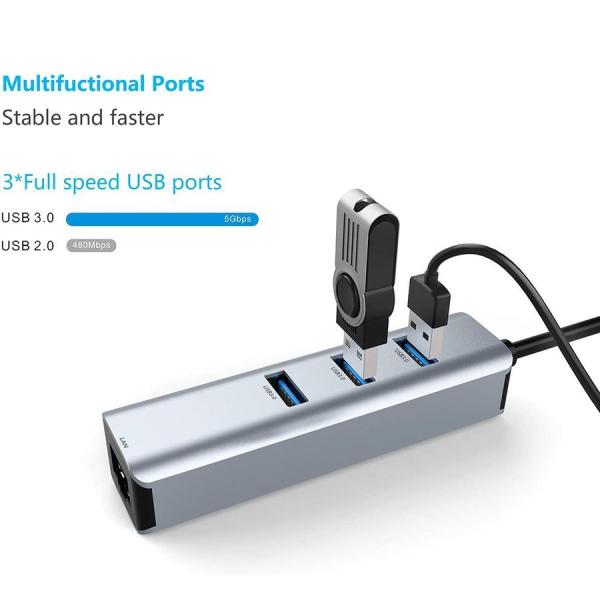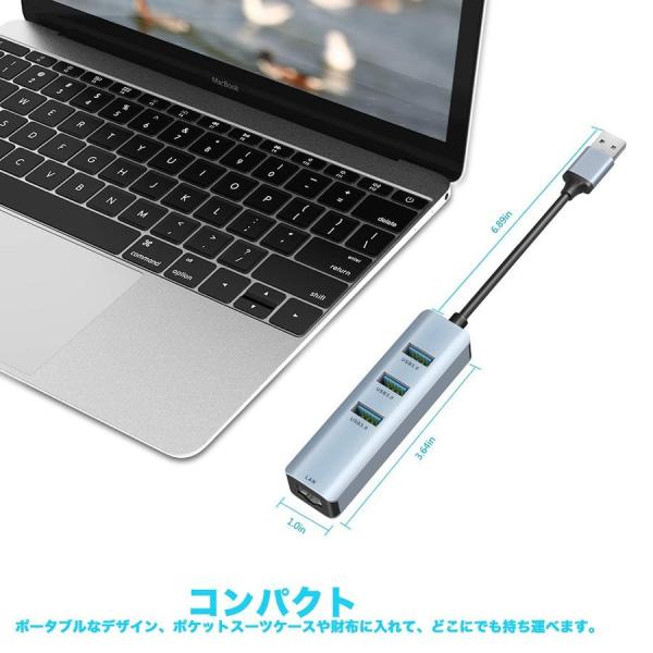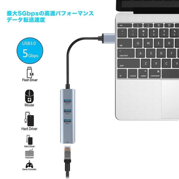 USB 有線lanアダプタ、USB3.0ハブ 有線LAN RJ45変換アダプター 4-in-1 3xUSBポート5Gbps 1xLANポート1000Mbps 高速転送 1000Mbps超高速 lanアダプタ