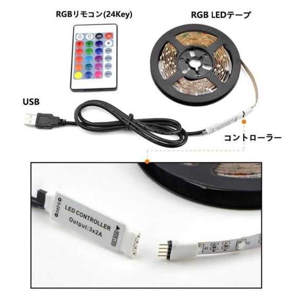 LED テープライト USB対応 3m SMD3528 5V LEDテープ RGB 間接照明 棚下照明 テレビの背景照明用LED