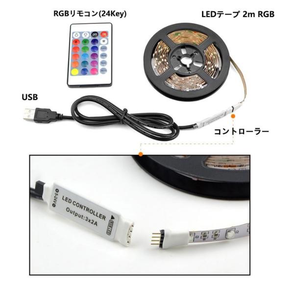 LED テープライト USB対応 2m SMD3528 5V LEDテープ RGB 間接照明 棚下照明 テレビの背景照明用LED