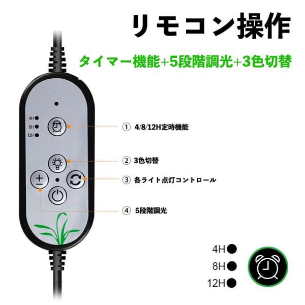 植物育成ライト LED 植物ライト 円盤3灯式 室内栽培ランプ タイミング定時機能 5段階調光 観賞用 360°調節可能 肉植物育成 家庭菜園 室内園芸