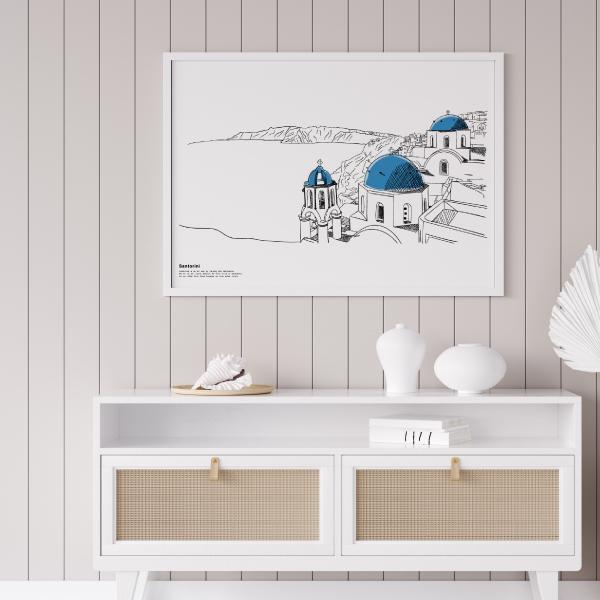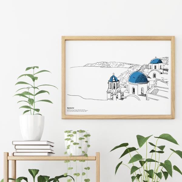 ギリシャ サントリーニ島 ヨーロッパ 風景 おしゃれ雑貨 インテリア アート ポスター 玄関 雑貨 一人暮らし 北欧 韓国 大きい A1 A2 A3 A4 B2 B3
