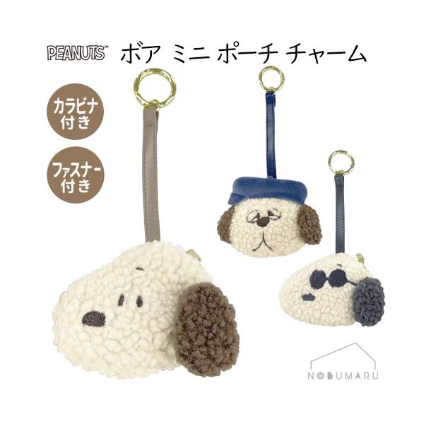 メール便送料無料 スヌーピーボアミニポーチチャーム PEANUTS オラフ ジョークール 小物入れ ボア素材 カラビナ付き ファスナー付き カミオジャパン