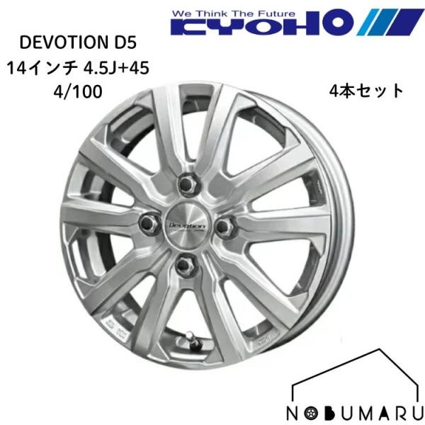 14インチ アルミホイール【4本セット送料無料】共豊 DEVOTION D5 14x4.5J+45 4/100 シルバー 4本セット 軽自動車 サ2