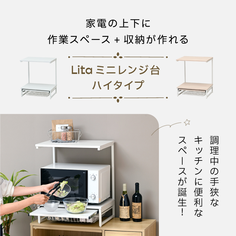 トースターラック レンジ上ラック 幅50cm ハイタイプ 冷蔵庫ラック 炊飯器ラック キッチンラック おしゃれ 木製 Lita