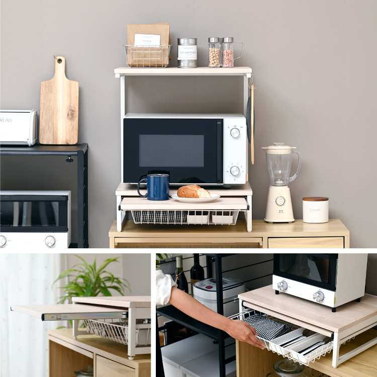 【関連ワード】 moca company リタ トースター上ラック 炊飯器ラック スライド棚付き トレー 引き出し付き かご レンジ台 バスケット収納 冷蔵庫上収納 ミニレンジ台 幅50 奥行39 40 高さ60 おしゃれ 白 アイボリー レンジ上 コンパクト シンプル スリム 爆買