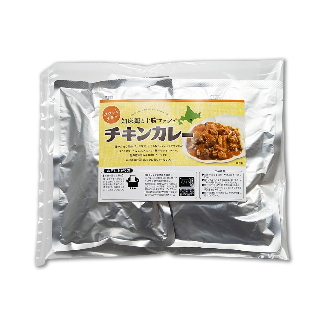 北海道の大地で育まれた知床鶏と、とかちマッシュ(ブラウン)が丸ごとゴロっと入ったエスニック風味のチキンカレー。北海道の恵みを凝縮して仕立てた素材本来の美味しさをお楽しみください。