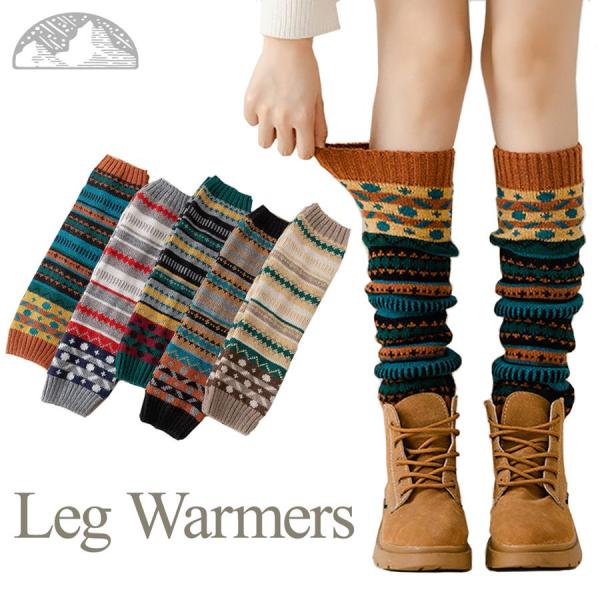 レッグウォーマー レディース フォークロア 柄 カラーニット 足首ウォーマー ざっくり ニット あったか 防寒 アウトドア かわいい おしゃれ メール便