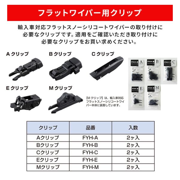 【在庫有即納】PIAA ワイパーブレード 雪用 フラットシリコートスノー用(FSS品番) 輸入車用ワイパーアーム取付用 Eクリップ 2個入 FYH-E