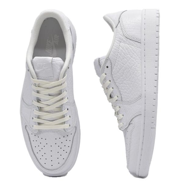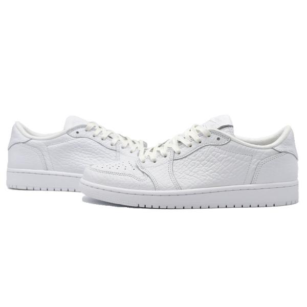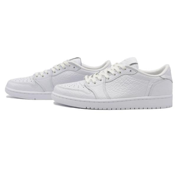 AJ1のローカットバージョンに、ミニマルなスウッシュレスデザインを採用しており、上質なレザーのアッパーが洗練された印象を与え、オールホワイトのカラーウェイはどんなコーデにもマッチ。