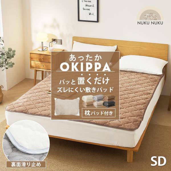 敷きパッド あったか ゴム無し 取付簡単 冬 冬用 \限定おまけ枕パッド付き/ セミダブル 120×200 簡単 オキッパ 時短 K34601SD