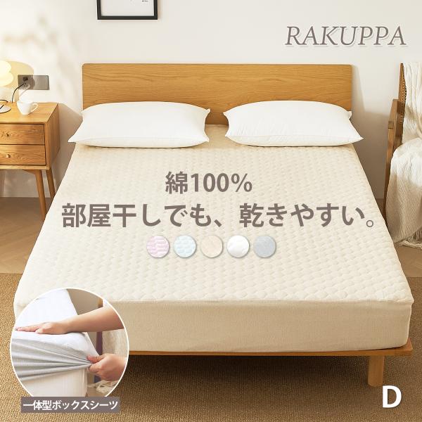 ボックスシーツ パッド一体型 敷きパッド パイル コットン 乾きやすい RAKUPPA 綿100% TEIJIN 抗菌 防臭 タオル地 ダブル ベッドパッド 薄い K35014BD