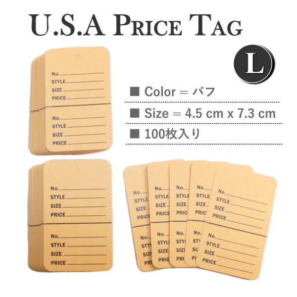 USA アメリカンスタイル プライスカード Lサイズ バフ 100枚 タグ 値札 下げ札 英字 ミシン目 切り取り式
