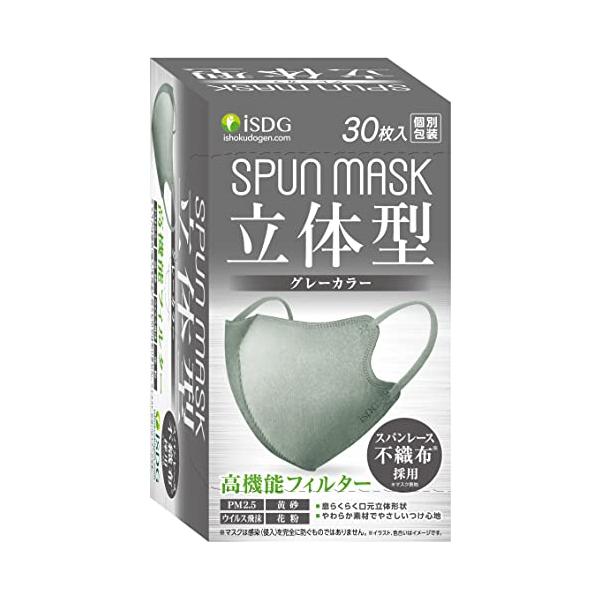 [医食同源ドットコム] iSDG 立体型スパンレース不織布カラーマスク SPUN MASK 個包装 グレー 30枚入