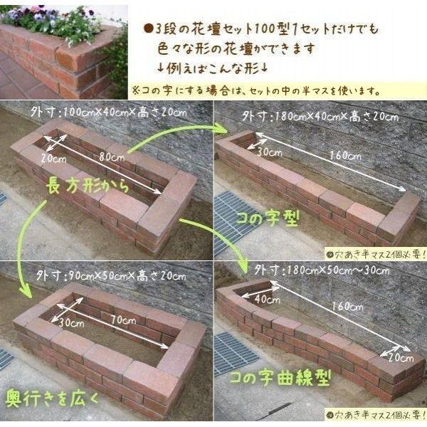 レンガ ガーデニング アンティーク調レッド らくらくれんが花壇セット100型 +穴あき半マス2個付き