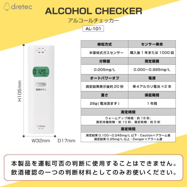 ドリテック アルコールチェッカー AL-101 ブレスチェッカー アルコール検知器 非接触型 業務用 乾電池 飲酒運転防止