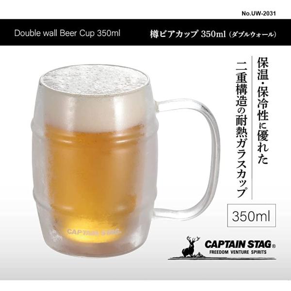 キャプテンスタッグ 耐熱ガラス 保冷 ダブルウォールグラス 350ml マグカップ 二重構造 ビール ビアタンブラー アウトドア バーベキュー 保温 CAPTAINSTAG