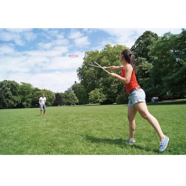 二つのスティックを使ってリングを投げる玩具です。