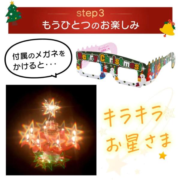 付属のドリームキャンドルめがねで光るものが星型に見える不思議も味わえる!