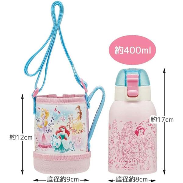 【在庫処分超特価!】カバー付き 直飲み 水筒 400ml プリンセス 保冷専用 ディズニー スケーター ボトル 保冷 キャラクター 遠足 新生活 お祝い 子ども