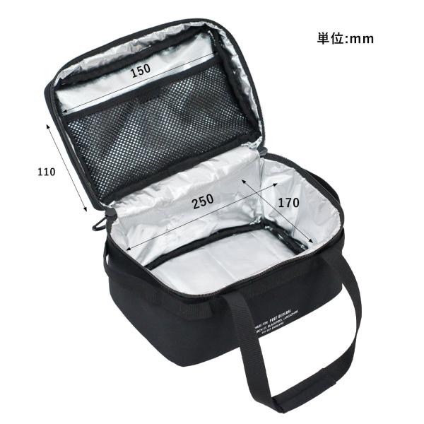 大きすぎずランチバッグやピクニックバッグとしても使いやすいサイズ感。 蓋の裏面にメッシュポケットが付いているので、ICE ERA以外の保冷剤をセットしてお使いいただけます。