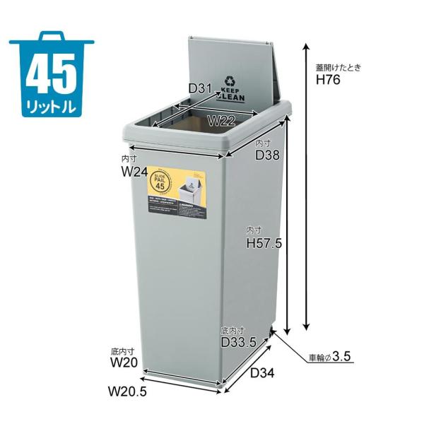 日本製 スライドペール 45L LFS-763 キッチン ゴミ箱 ダストボックス おしゃれ シンプル ペールカン フタ付 新生活