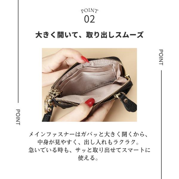 鍵はもちろん、小銭やカード、お札までこれ1つにまとまり、ミニ財布としても活躍します。