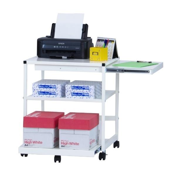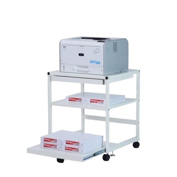 プリンター台 プリンターラック スライド棚付マルチラック 3段 上下スライド棚付 ホワイト YSL-020 林製作所