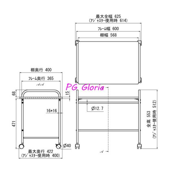 アジャスター使用時 = W61.4 X D40 X H51.2 cm