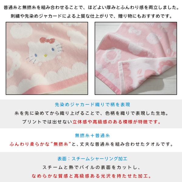 サンリオ フェイスタオル 34×80cm 綿100% 無撚糸 先染めジャガード スチームシャーリング 刺繍 手拭き 顔拭きタオル 汗拭きタオル nss ft1 メール便B