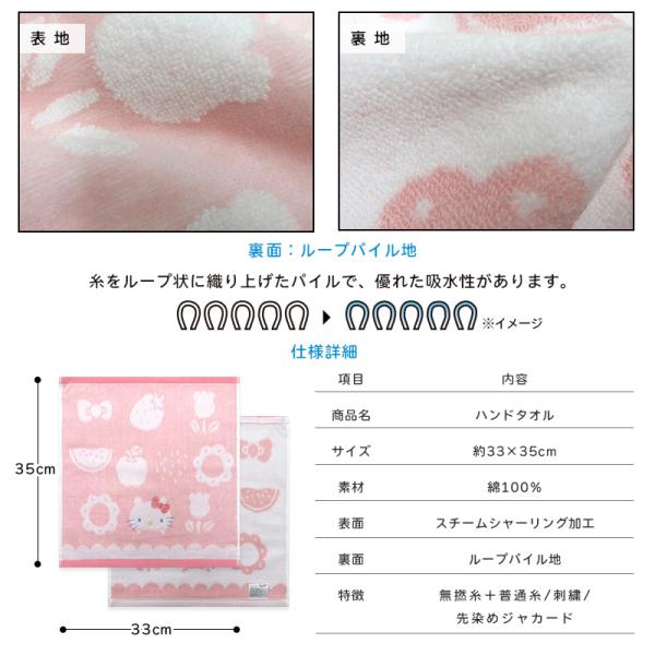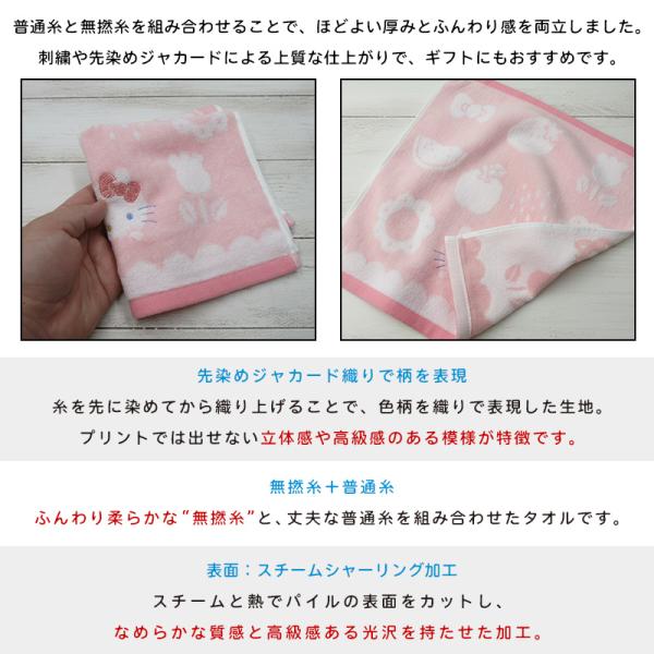 サンリオ ハンドタオル 34×35cm 綿100% 無撚糸 先染めジャガード スチームシャーリング 刺繍 ウォッシュタオル 保育園 幼稚園 女の子 nss wt1 メール便C
