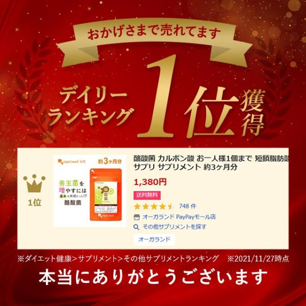酪酸菌(約3ヶ月分)ダイエット サプリ サプリメント 短鎖脂肪酸 すっきり 善玉菌 健康 美容 ダイエット オーガランド おすすめ ポイント利用