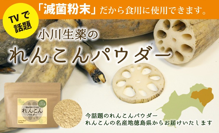 れんこんパウダー レンコン粉末 国産 徳島県産 ノンカフェイン 料理 健康食品 飲み物 蓮根パウダー 蓮根粉末 小川生薬