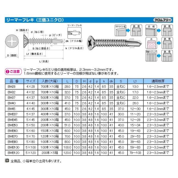 建築板金外壁、屋根工事などで軽量型鋼(C型鋼)厚さ1.6ミリ以上の下地材に金具、木材等を下穴なしで取り付ける際に使用します。