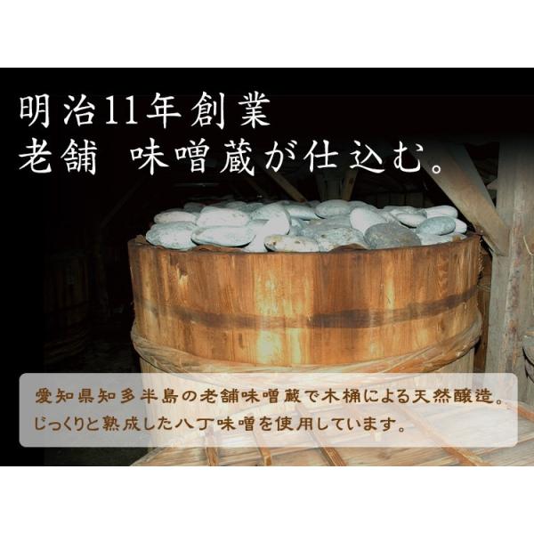 明治11年創業の知多半島にある老舗味噌蔵で天然醸造した八丁味噌を使用。大豆と塩のみで醸造した、上品な味わいが楽しめます。