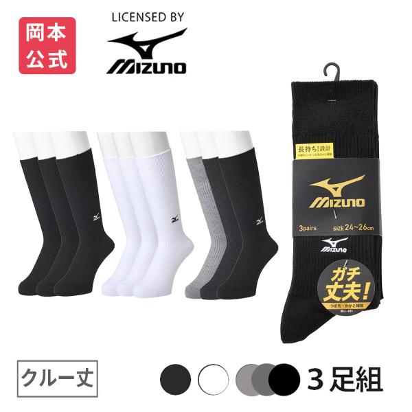 【靴下の岡本公式】【3足組】MIZUNO メンズ ソックス クルー丈 リブ 刺繍 ミズノ デイリー ガチ丈夫