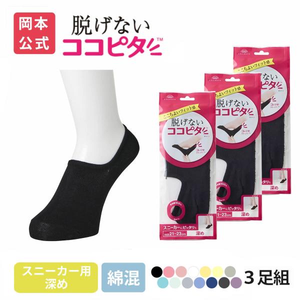 【靴下の岡本公式】【3足組】ココピタ ベーシック レディース スニーカー用深め 綿混 丸編み 無地