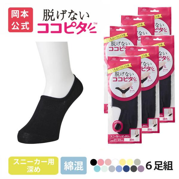 【靴下の岡本公式】【6足組】ココピタ ベーシック レディース スニーカー用深め 綿混 丸編み 無地