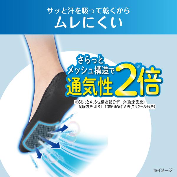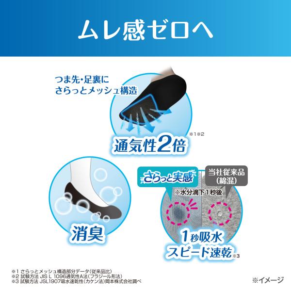 通気性2倍、1秒吸水・スピード速乾、消臭機能付きで足元をさらっと快適に。