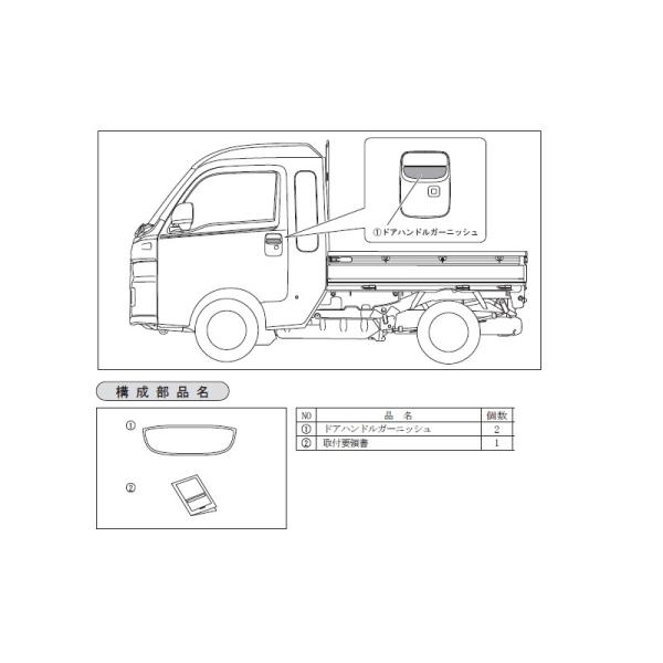 (T)ドアハンドルガーニッシュ(ブラック)左右分セット「ダイハツ純正用品」 ハイゼット トラック S500P/S510P 08400K5057/08400-K5057