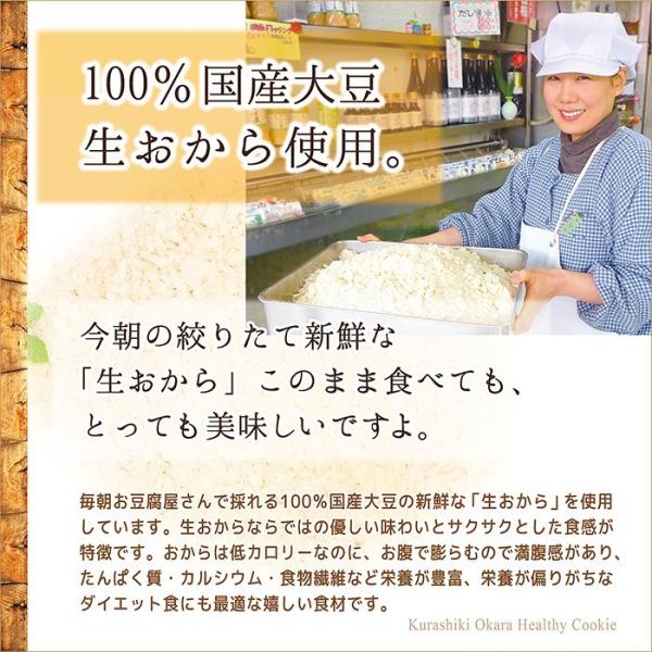 ●地元岡山のお豆腐屋さんで作られる新鮮な国産大豆の生おからを使い、美容と健康を考えた低カロリークッキー。