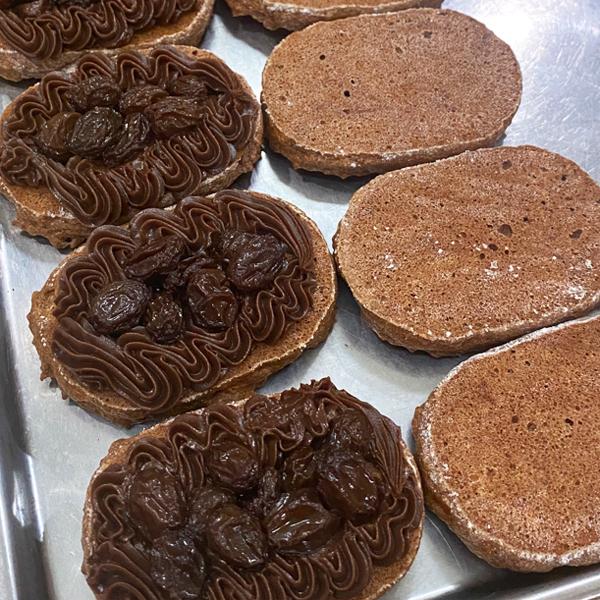 ショコラダクワーズ生地には、本来のサクサクもっちり食感プラス、欧州アーモンド特有のビター香を持つ「シシリー産、ギルジェンティアーモンド」の粗挽き粉末とフランス産カカオパウダーを使用し風味豊かに仕上げました。