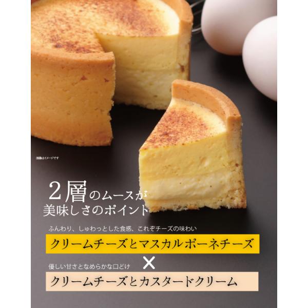 クリームチーズ、バニラビーンズとカスタードクリームなどを合わせ、表面をこんがり焼き上げたベークドタイプのチーズケーキです。 チーズ部分の食感は、ベイクドというよりまさにレアな口溶け。しっとり滑らかな舌触りは、クリームに合わせたメレンゲのなせる技。ほどよくクリームに含まれた小さな気泡が“フワフワ・マジック”を演出しているのです。 サクッと香ばしいタルト生地とのバランスも絶妙。