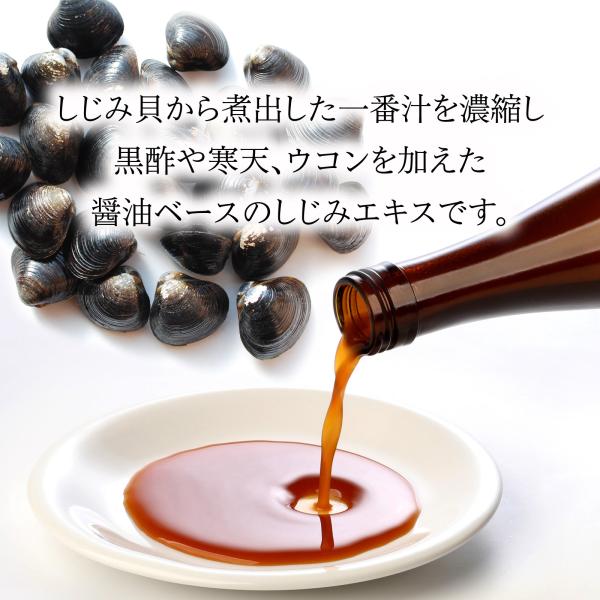 しじみ貝から煮出した一番汁を濃縮し、黒酢や寒天、ウコンを加えた、醤油ベースのしじみエキスです。