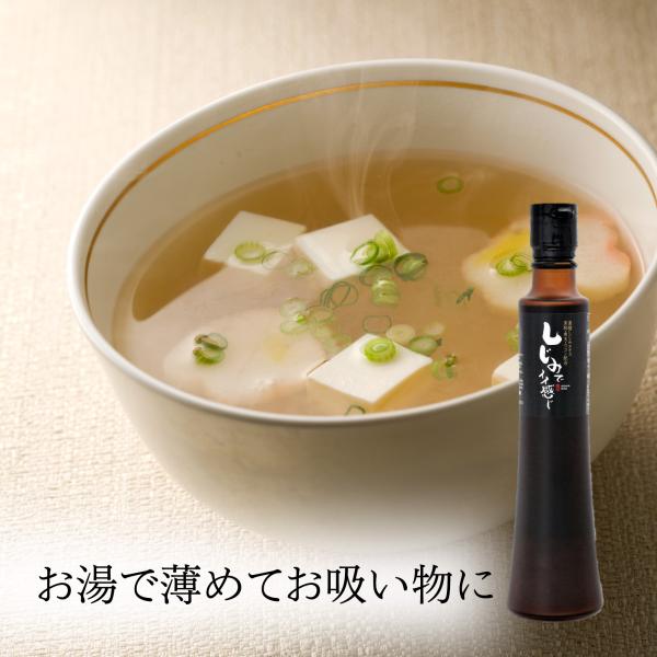 お湯で薄めてお吸い物として、またお醤油代わりとしてもお使いいただけます。